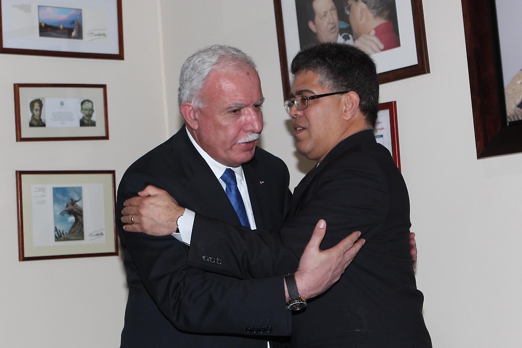 Caracas, 05 de marzo de 2014.- El ministro del Poder Popular para Relaciones Exteriores, Elías Jaua Milano, sostuvo un encuentro con su par del Estado de Palestina, Riyad Al Maliki, para revisar diversos temas de la agenda bilateral y acuerdos de cooperación que sostienen ambos Gobiernos.