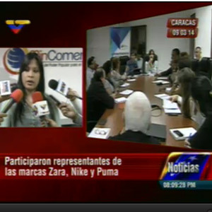 10-03-14.-Este domingo, la superintendente Nacional para la Defensa de los Derechos Socio Económicos, Andreína Tarazón, se reunió con representantes del sector comerciales en el área textil, particularmente con las cadenas Zara, Nike , Puma, Converse y Everlast, con el objetivo de discutir la Ley Orgánica de Precios Justos.