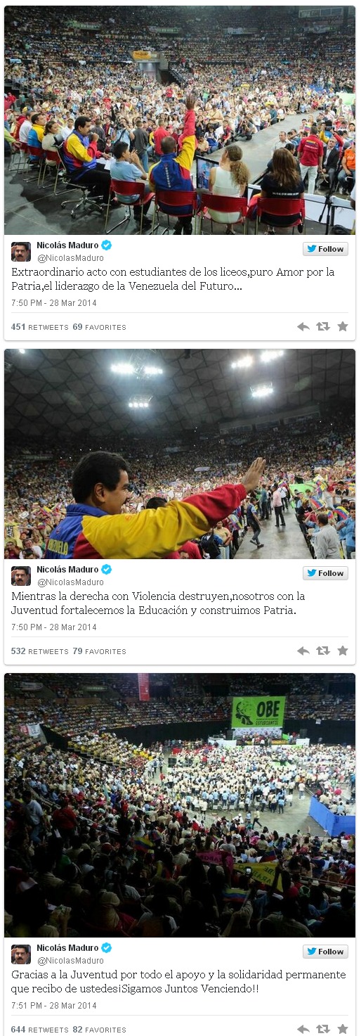 "Los liceos deben ser para estudiar, para construir el país y la paz", dijo desde el Poliedro de Caracas donde sostuvo un encuentro con más de 11 mil estudiantes pertenecientes a la Organización Bolivariana Estudiantil (OBE).