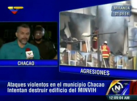 2 abril 2014 - El ministro del Poder Popular para la Vivienda y Hábitat, Ricardo Molina, denunció que la policía de Chacao permitió el paso de los grupos terroristas que incendiaron la sede del gabinete la tarde de este martes, al tiempo que informó que en los próximos días estarán realizando la denuncia formal ante las organizaciones pertinentes.