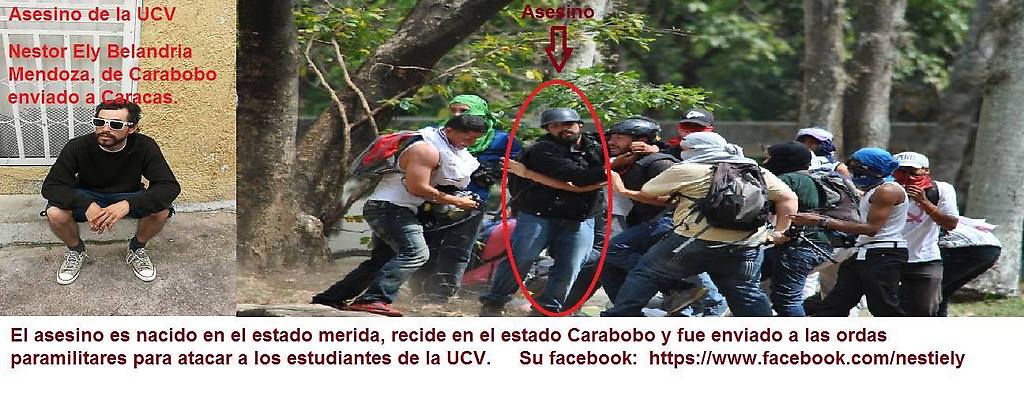 Hoy la víctima es nuestro camarada y compañero de lucha Néstor Ely Belandria Mendoza, Estudiante de Ingeniería en la Universidad de Carabobo, Presidente de la Asociación de Estudiantes y Trabajadores Guacareños de esa casa de estudios e integrante de la O.P.R Bravo Sur. Se le acusa falsamente y sin pruebas de pertenecer al grupo violento que ataco a Estudiantes en la UCV en los hechos violentos que se suscitaron en ese recinto universitario la semana pasada, se le llama paramilitar, terrorista y asesino a través de las redes sociales mostrando una foto de su cara, promoviendo de manera intencional odio hacia su integridad como persona. Sabemos que no es por casualidad ni es producto de bromas una acusación tan seria en los momentos que hoy vive nuestro país, donde se ha demostrado que en las guarimbas hay presencia de grupos entrenados y asalariados, es decir, de verdaderos paramilitares.