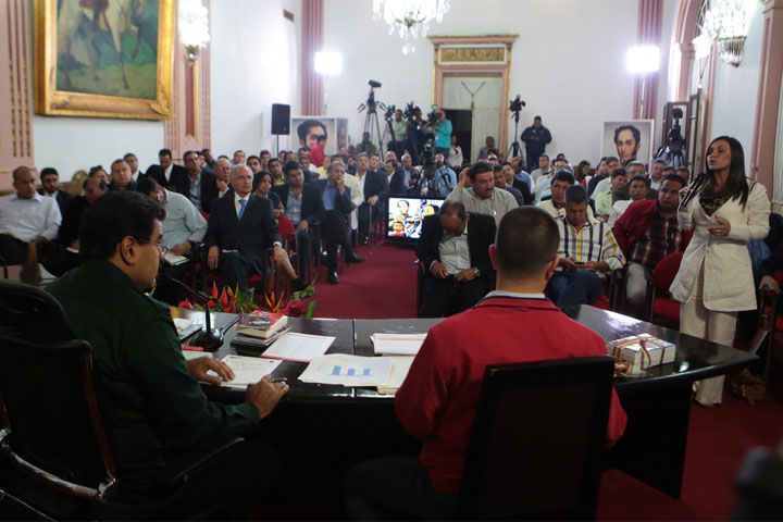 Jorge Arreaza, Jorge Rodríguez y Elias Jaua fueron designados por el Presidente de la República, Nicolás Maduro, para integrar una Comisión de Enlace para continuar dialogando con los integrantes de la Mesa de la Unidad (MUD), tras la reunión realizada en la noche de este jueves en el Palacio de Miraflores en Caracas.