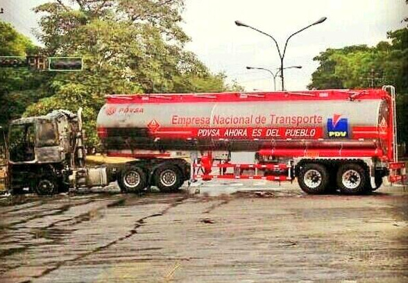 Valencia, 14 Abr. 2014.- A primeras horas de la mañana de este lunes grupos violentos de la ultra derecha incendiaron una gandola de Pdvsa que circulaba en las inmediaciones de la urbanización Prebo, en Valencia, estado Carabobo.