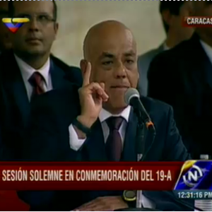 Durante su discurso en la Sesión Solemne por el aniversario 204 de la Declaración de la Independencia de Venezuela, indicó que el Gobierno del presidente de la República Bolivariana de Venezuela, Nicolás Maduro, insiste en la paz, en la convocatoria de todas y todas para el diálogo basado en respeto y tolerancia, por la vía de la construcción.