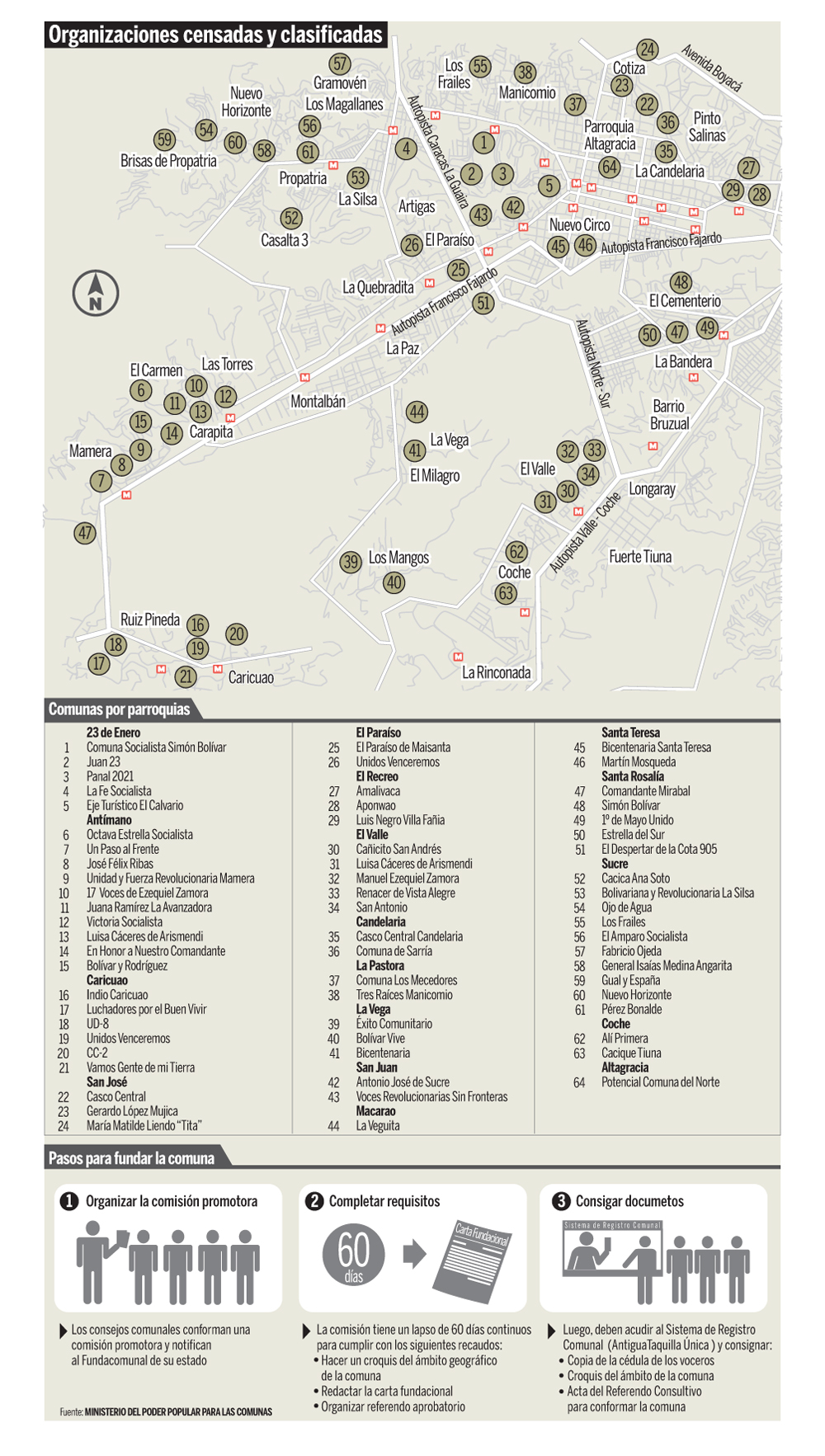 Para la certificación, cada comuna debe asistir al Sistema de Registro Comunal que es permanente. En Caracas tienen que dirigirse a la oficina ubicada en el sector El Guarataro de la parroquia San Juan.