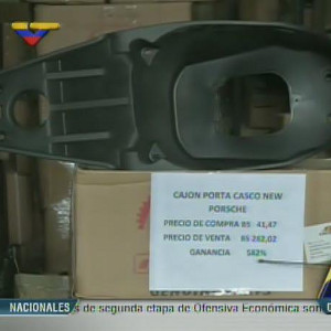 Nelson García, coordinador de la Superintendencia de Precios Justos en esta entidad, detalló que un cajón porta casco es adquirido por la empresa a Bs. 41, 47, luego es vendido al mayor en Bs. 282, lo cual da un margen de especulación superior a 582 %.