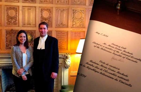 08-05-14.-La dirigente María Corina Machado continúa su periplo por el mundo montando su show, y esta vez fue a Otawa, Canadá donde fue recibida por senadores del partido gobernante.
