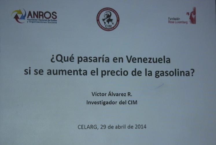 Dentro de los que se han dedicado al análisis y estudio de este tema, que muchas veces aparece como “Tabú”, se encuentra Víctor Álvarez, economista de reconocida trayectoria y Premio Libertador al Pensamiento Crítico, investigador del CIM, quien participó en dicho foro. Alexandra Martínez, de la Fundación Rosa Luxemburgo, dio la bienvenida al foro: ¿Qué pasaría en Venezuela si se aumenta el precio de la gasolina?, en nombre de la Fundación, del Centro de Estudios Latinoamericanos Rómulo Gallegos (CELARG), del Centro Internacional Miranda (CIM) y de la Asociación Nacional de Redes de Organizaciones Sociales (ANROS).