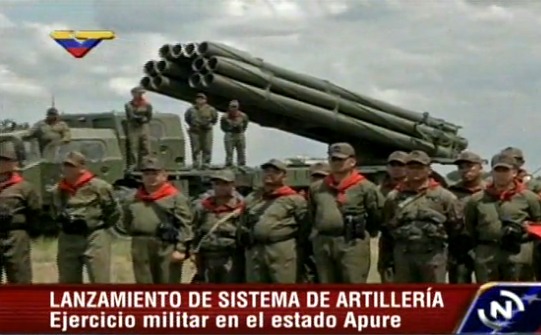 13May. AVN.- En una vasta llanura al sur del estado Apure, en la remota zona llamada Cajón del Cinaruco, este lunes el Comando Estratégico Operacional de la Fuerza Armada Nacional Bolivariana (Ceofanb) realizó un ejercicio militar al lanzar los cohetes Obus "MSTA-S", el LCM BM-21 Grad y el LCM Smerch, los cuales forman parte del nuevo sistema de artillería de campaña con el que cuenta el país, a fin de reforzar la defensa y soberanía del territorio nacional.