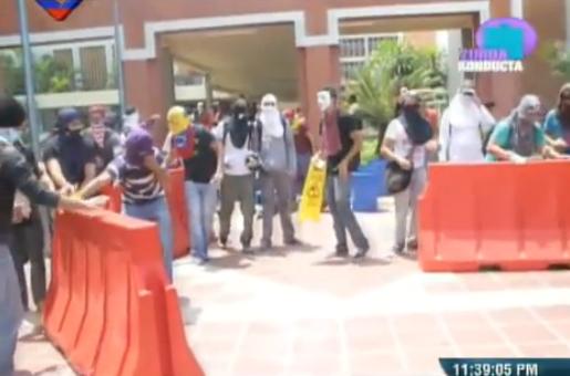 17-05-14.-Encapuchados, enmascarados, con botellas de vidrio y mascaras antigases terroristas atacaron las instalaciones de la Universidad Rafael Belloso Chacín (URBE) en Maracaibo, estado Zulia.