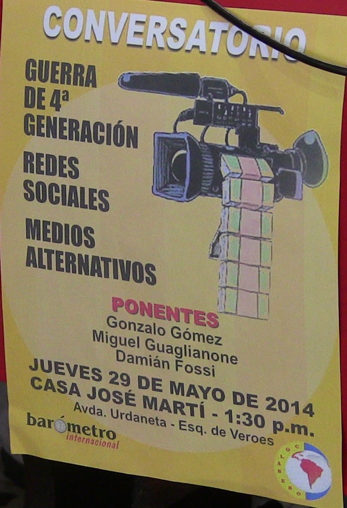 Gonzalo Gómez de Aporrea.org trató el tema de La Comunicación Alternativa, (Medios Alternativos), la comunicación anti hegemónica, que se confronta con esta Guerra de 4ta Generación.