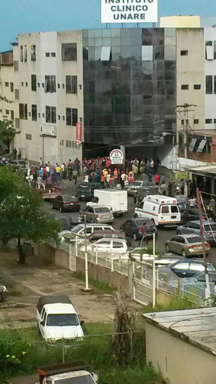 A las 8 de la noche nos informaban que los Guardias Nacionales que estaban buscando llevarse presos a los trabajadores internados en la Clínica Unare fueron desalojados de allí por centenares de trabajadores que están velando por sus compañeros heridos.