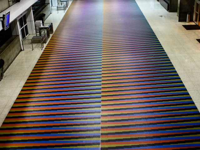 12 agosto 2014 - Este lunes se iniciaron los trabajos de restauración de obra Cromointerferencia de color aditivo, creación del venezolano Carlos Cruz Diez que se encuentra en los pasillo de Terminal Internacional del Aeropuerto de Maiquetía, estado Vargas.
