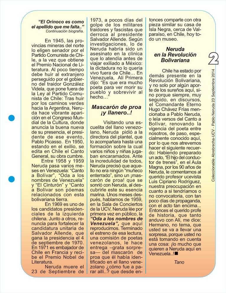 23 de septiembre de 2014.- NERUDA 23 de Septiembre 1973 - 2014.