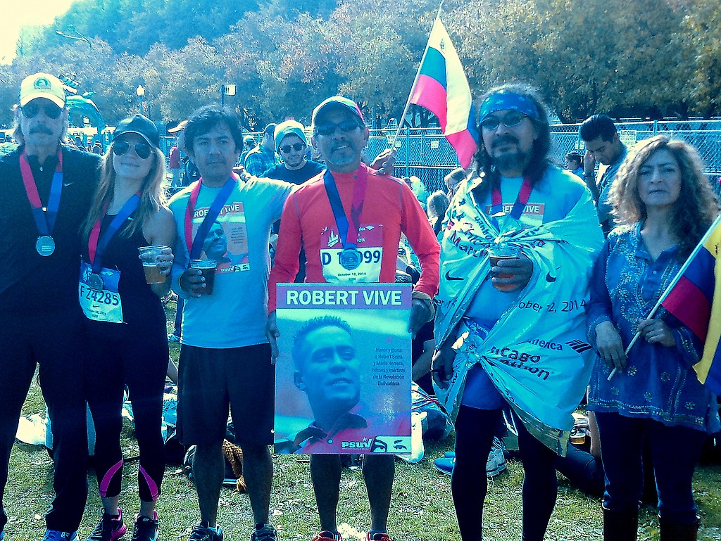 Chicago, 13/OCT/2014 (Prensa Consulado).- Durante el renombrado Maratón de Chicago realizado ayer en esta ciudad un grupo de corredores de Venezuela, Ecuador y Guatemala mostraron su solidaridad con el pueblo venezolano y su repudio al fascismo promovido por factores de la derecha venezolana, al recordar al recientemente asesinado, diputado del PSUV, Robert Serra quien fuese vilmente ejecutado en la ciudad de Caracas el pasado miércoles primero de octubre y cuyos asesinos materiales ya han sido capturados por las autoridades policiales venezolanas y -según versiones periodísticas- ya han empezado a dar informacion sobre los autores intelectuales a quienes las autoridades venezolanas han prometido aplicar todo el peso de la ley.