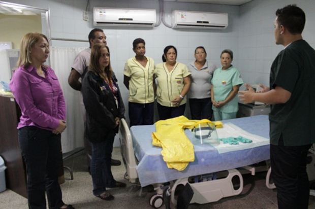 Caracas, 17 de octubre de 2014).- El Gobierno Bolivariano, a través del Ministerio del Poder Popular para la Salud (MPPS), está realizando la capacitación y formación en todos los centros de atención del país habilitados sobre cómo abordar una posible contingencia de Ébola, instruyendo al personal que labora allí laboran tales como: camilleros, enfermeros, enfermeras, camareras, médicas y médicos, entre otros.