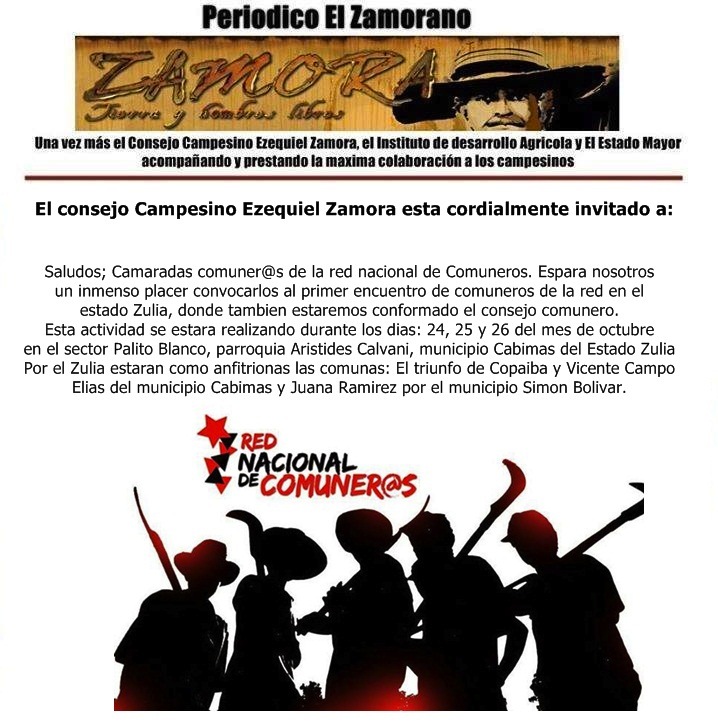 El Consejo Campesino Ezequiel Zamora invita al primer encuentro de comuneros en la red