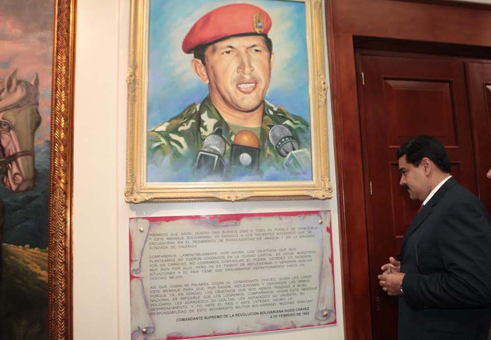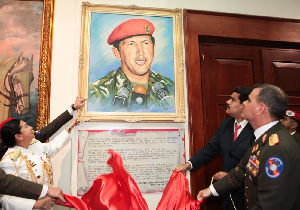 Caracas, octubre 28 - El presidente de la República, Nicolás Maduro, develó un cuadro del Comandante Hugo Chávez en el lugar desde donde envió su histórico mensaje el 4 de febrero de 1992.