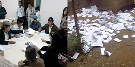 Escena del proceso de reconteo de votos en la ULA. Boletas regadas por elementos extraños en el Núcleo Universitario "Rafael Rangel" del Estado Trujillo.