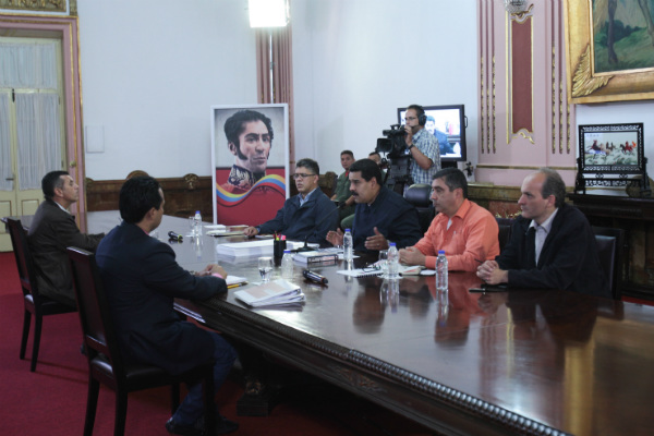 "El que esté interesado venga para acá. Aquí yo voy a tener las puertas abiertas de Miraflores para recibir día por día a empresarios, grandes, medianos, pequeños a dirigentes de las empresas socialistas, trabajadores de las empresas de propiedad social, a sesión permanente, bastante salones de trabajo que tenemos. Sesión permanente día por día para ganar la guerra económica. Vamos a articular una nueva economía un nuevo orden económico nacional", afirmó.