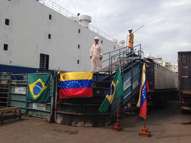El Gobierno Bolivariano procede a la recepción del primer embarque de 10 mil animales de raza nelore procedente de nuestro aliado comercial estratégico, la República federativa del Brasil, siendo el primer paso hacia la búsqueda de la protección del sector Cárnico Nacional con el fin de erradicar la especulación que han sufrido los precios del rubro en los últimos meses producto de los esquemas de importación privada, regidos por el lucro capitalista, que han utilizado el comercio nacional y las divisas del Estado para el enriquecimiento a costa del bienestar de la población.