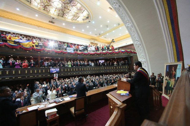 "Felicito a los diputados por los defensa de la estabilidad de la patria, de la unión nacional, y de los grandes intereses" del pueblo, dijo al iniciar su mensaje al país sobre el diferendo territorial del Esequibo, territorio que mantiene en litigio a Venezuela con Guyana desde hace más de un siglo.