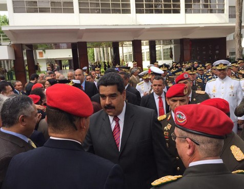 El acto se realiza en el Patio de Honor de la Academia Militar, en Fuerte Tiuna, y están presentes los representas de los Poderes Pública y los ministros para la Defensa y comandante Comando Estratégico Operacional de la Fuerza Armada (Ceofanb), Vladimir Padrino López, y para el Despacho de la Presidencia, almiranta Carmen Meléndez.