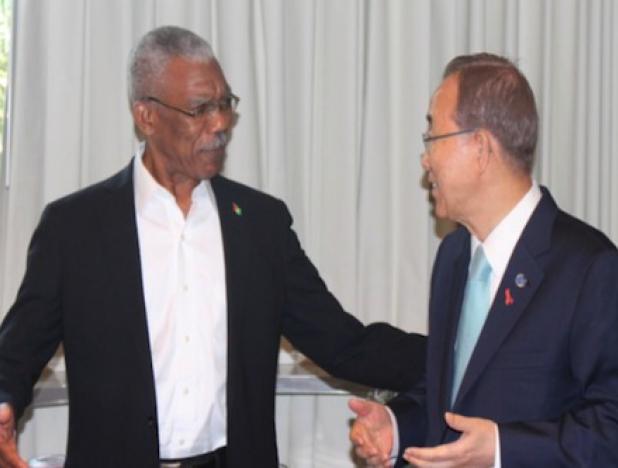 31 de julio de 2015.- El secretario general de la Organización de Naciones Unidas (ONU), Ban Ki-Moon, conversó con el presidente de Guyana, David Gragner acerca del reclamo histórico de Venezuela en relación a la Guayana Esequiba.