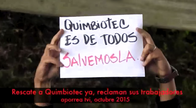 Lunes, 05 de octubre de 2015.- Desde la asamblea de trabajadores y trabajadoras de Quimbiotec C.A. efectuada el viernes 2 de octubre en la planta ubicada en Pipe, estado Miranda, dentro del campus del IVIC, trabajadores de esta empresa productora de medicamentos hemoderivados, preocupados por las irregularidades que vienen observando, entre ellas, la paralización de la planta que eventualmente va a producir escasez en el país de los productos que elaboran, denuncian a la opinión pública nacional el grave riesgo que se está corriendo ante la paralización de esta planta.