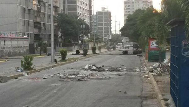 08-10-15.-Tras dos días de protesta por falta de agua en la urbanización Menca de Leoni en Guarenas, la localidad amaneció este jueves desolada y se observa destrozos y escombros en las calles.