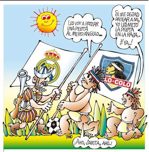 Caricatura de El Tano...Real Madrid vs el indio Colo-Colo, Día de la Resistencia "a la chilena"...