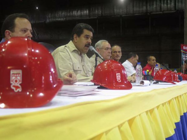 La reunión se lleva a cabo en los galpones de Sidor. "Qué vivan los trabajadores y la clase obrera venezolana", dijo al inicio de su alocución.