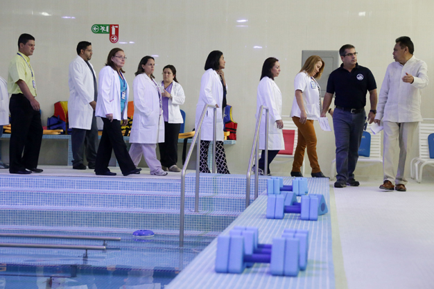 Manifestó que en el área de rehabilitación infantil existe un cómodo gimnasio, al cual se le cambiaron todas las colchonetas. Indicó que la Unidad de Hidrología Médica cuenta ahora con dos consultorios médicos totalmente modernos, cubículos de tratamiento, área de peloide (fangos medicinales), sauna medicinal, chorros de agua terapéutica y de vapor.