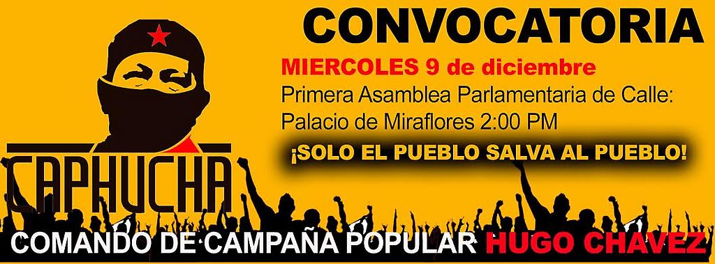 Para avanzar en la moralización urgente de nuestro pueblo convocamos con carácter de urgencia a una concentración en el palacio de Miraflores este miércoles 9 de diciembre a las 2:00 pm. para realizar la Primera sesión de parlamentarismo de calle que se da el pueblo de Caracas.
