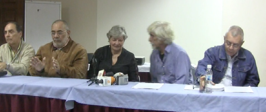 Una vez presentados los miembros presentes de la Plataforma, entre quienes se encontraban; Gustavo Márquez, Nicmer Evans, Héctor Navarro, Ana Elisa Osorio, Santiago Arconada, Oly Millán, Cliver Alcalá Cordones, Gonzalo Gómez y César Romero comenzó Freddy Gutiérrez con la lectura del documento que titularon En defensa de la Constitución de la República Bolivariana de Venezuela y de la Democracia y cuya lectura cuidadosa y atenta recomendamos a los interesados en este vital tema para el país.