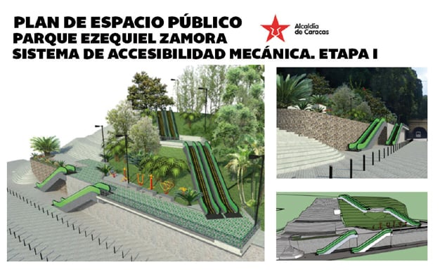 Este proyecto comprende tres tramos (seis escaleras) que permitirán salvar los 16 metros de altura que se alcanzan con las icónicas escalinatas del parque Ezequiel Zamora. Estos elevadores están especialmente diseñados para espacios abiertos y cuentan con un sistema de ahorro energético.
