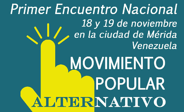 El pasado 18 y 19 de noviembre se realizo en la ciudad de Mérida el 1er Encuentro del Movimiento Popular Alternativo en el cual se dieron cita luchadores y luchadoras sociales de diversos ambitos de la vida nacional, de dicho encuentro salio como acuerdo un manifiesto público, que reproducimos a continuación: