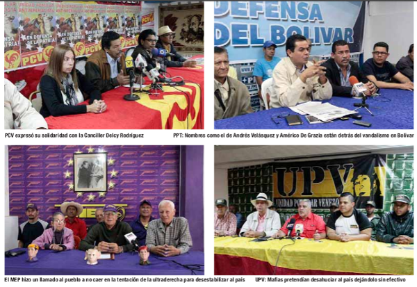 20 dic. 2016 - Organizaciones políticas pertenecientes al Gran Polo Patriótico (GPP) se pronunciaron este lunes sobre los intentos de desestabilización del orden público en algunas entidades del país mediante acciones vandálicas intentadas por factores de la ultraderecha con nexos con paramilitares y pranatos.