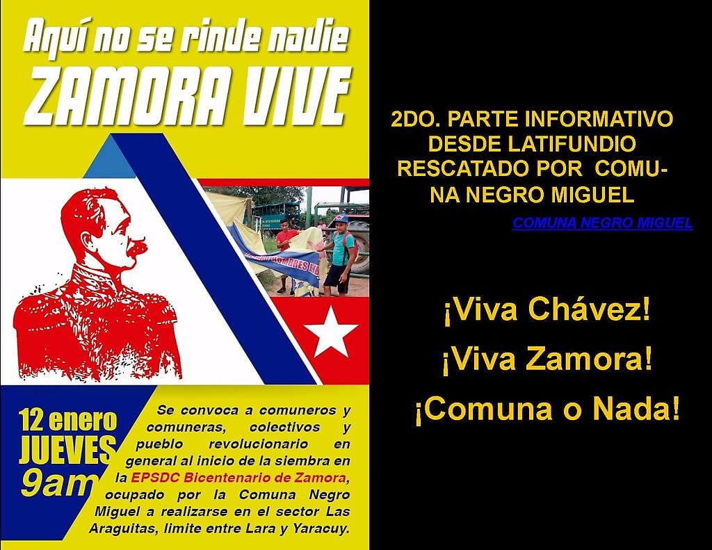 Hoy, a 157 Años del Balazo que asesinó el cuerpo del General En Jefe Ezequiel Zamora, demostramos que su lucha está más viva que nunca desde la tierra liberada de las manos oligarcas, y hacemos saber al pueblo Venezolano nuestros acuerdos en la máxima instancia popular: La Asamblea Comunera