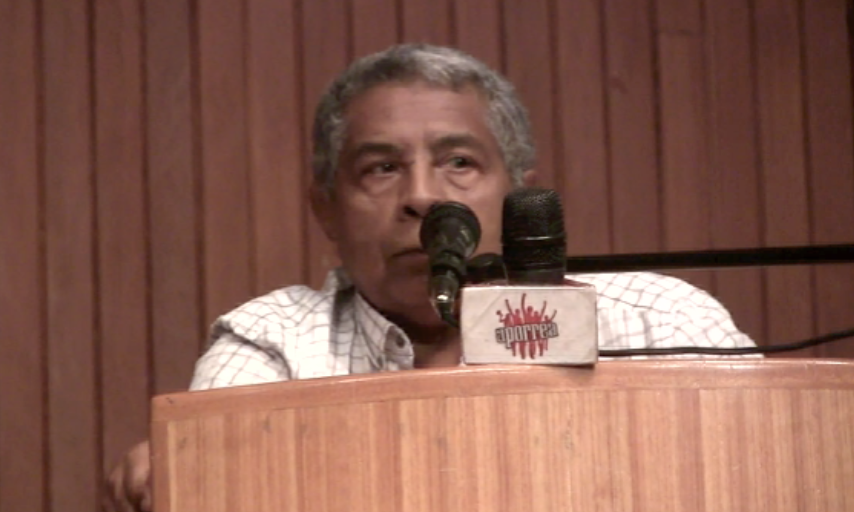 Domingo, 12 de febrero de 2017.- Orlando Chirinos del partido Socialismo y Libertad, veterano dirigente y luchador social, durante su participación en el acto de celebración del primer aniversario de la Plataforma del Pueblo en Lucha y el Chavismo crítico, efectuado en el auditorio de la facultad de Humanidades de la UCV el día 31 de enero, esbozó las condiciones en que se encuentra la economía del país: el producto interno bruto cayó un 12%, la inflación , dicen las proyecciones, es un 830%...hay escasez y los productos que se consiguen están dolaralizados, valen todos los reales del mundo y la inmensa mayoría de la población no los puede comprar.