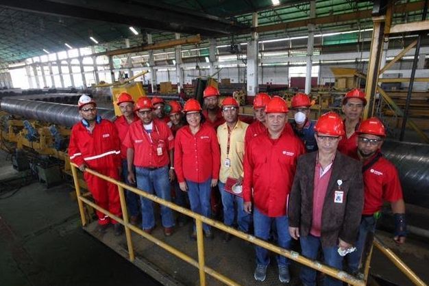 Las autoridades y trabajadores verificaron la puesta en marcha de las líneas de producción con personal propio. Igualmente, supervisaron las pruebas de arranque para reactivar la línea de tuberías helicoidales calidad API de 16 a 42 pulgadas, con una capacidad instalada de 55 mil toneladas métricas anuales.