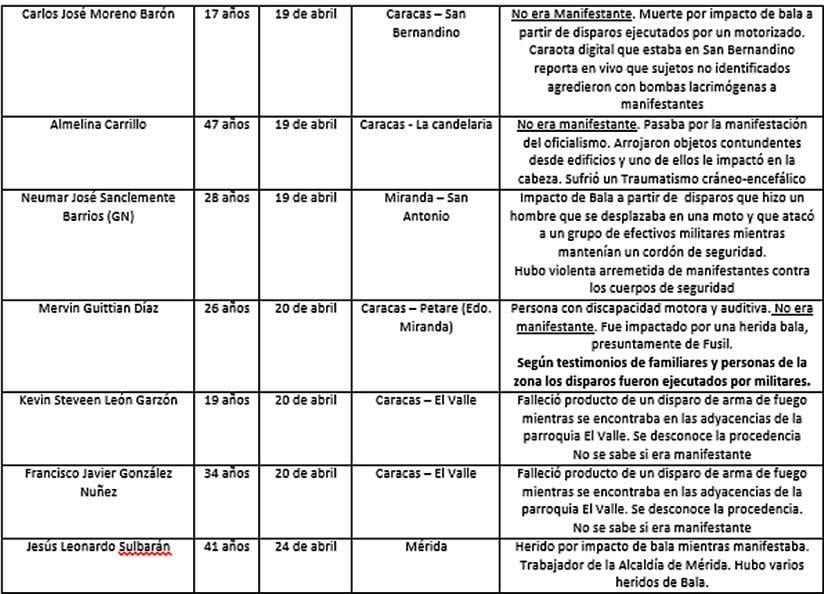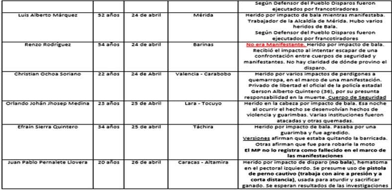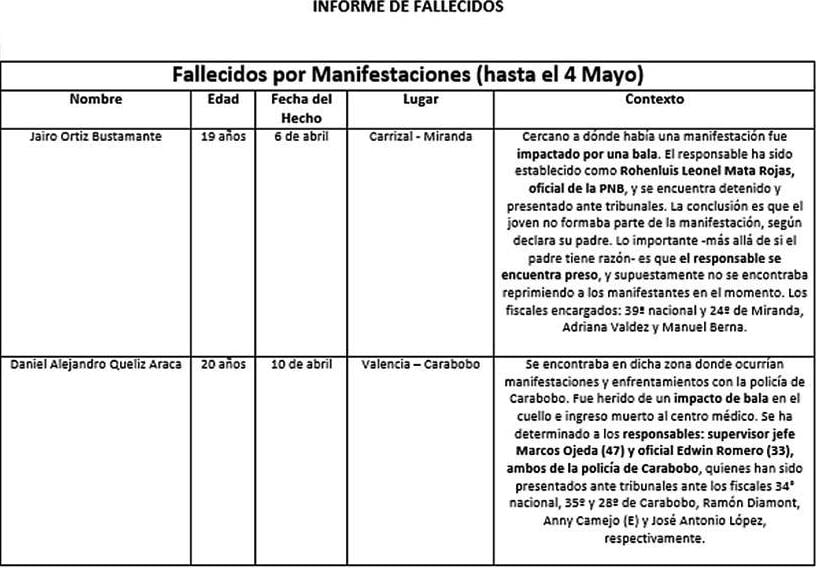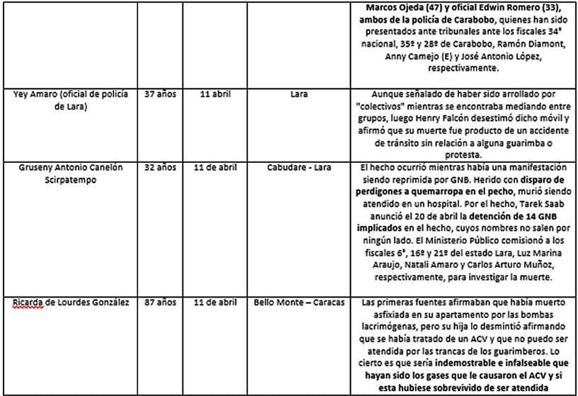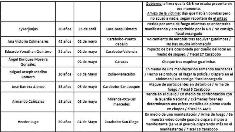 4. Informe de Fallecidos hasta el 4 de Mayo (Elaboración de Marea Socialista Caracas)