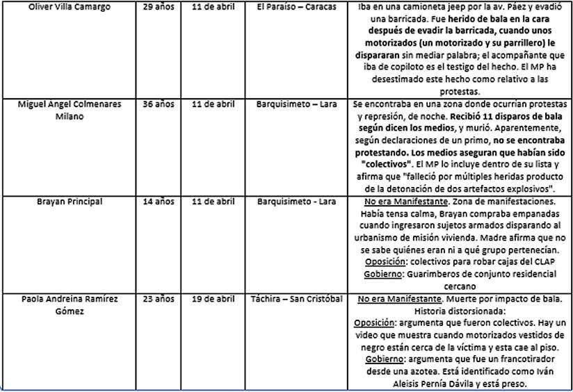 El gobierno, a través de una equivocada política comunicacional, busca la forma de culpar a las víctimas, intentando justificar el asesinato. En Venezuela no hay pena de muerte y en ningún contexto los cuerpos de seguridad pueden atacar de manera agresiva a los manifestantes. La actuación de la Policía en estos casos tiene que orientarse a contener el enfrentamiento, a disuadir a los manifestantes y a lograr su progresiva dispersión.