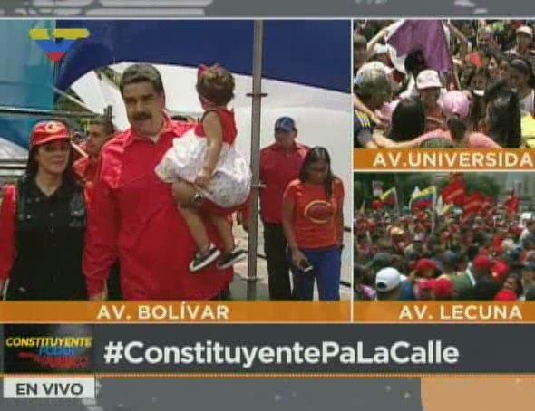 Maduro realizó el llamado desde la avenida Bolívar de Caracas, a donde llegó para asistir al cierre de campaña de los candidatos a la Asamblea Nacional Constituyente. El acto es transmitido en cadena nacional. Este jueves 27 de julio militantes oficialistas se concentran en la avenida Bolívar, de Caracas, como parte del cierre de la campaña electoral de los comicios de la Asamblea Nacional Constituyente (ANC) previstos para el domingo 30 de julio para elegir a 545 asambleístas.