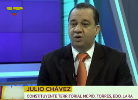 4 agosto 2017 - El diputado constituyente territorial por el municipio Torres del estado Lara, Julio Chávez, aseveró este viernes que con la instalación formal de la Asamblea Nacional Constituyente (ANC) se materializa la voluntad del pueblo que masivamente salió a votar el pasado 30 de julio apostando a la paz y la convivencia.