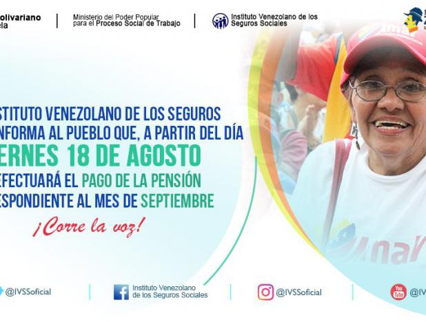 Caracas, agosto 15 - Más de 3 millones de ciudadanos pensionados, recibirán este viernes 18 de agosto el pago correspondiente al mes de agosto.