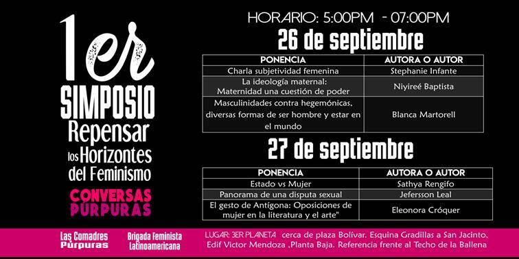 El simposio esta previsto para dos días 26 y 27 de septiembre a las 5:00pm en el 3er Planeta