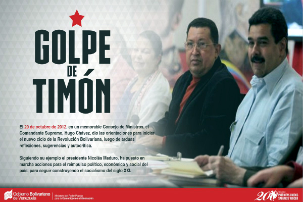 Recordó que en el discurso del "Golpe de Timón", pronunciado por el líder revolucionario el 20 de octubre de 2012, el comandante Chávez "exigía la máxima eficiencia y compromiso en el cumplimiento de las grandes tareas a favor del pueblo y del avance de la Patria. Aún recuerdo sus palabras cuando me encomendó como Vicepresidente Ejecutivo esta tarea 'Nicolás, te encomiendo esto como te encomendaría la vida, las comunas".