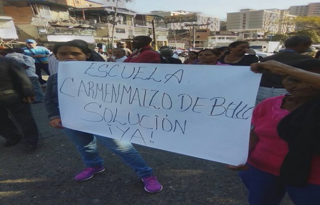 Ayer jueves 1ro de marzo, padres y representantes de la Escuela Básica Nacional Carmen Maizo de Bello, ubicada en la parroquia El Valle (Caracas), detrás de la Jefatura, junto a voceros de los consejos comunales, salieron a las calles para reclamar por el deplorable estado en que se encuentra la institución y las promesas incumplidas.