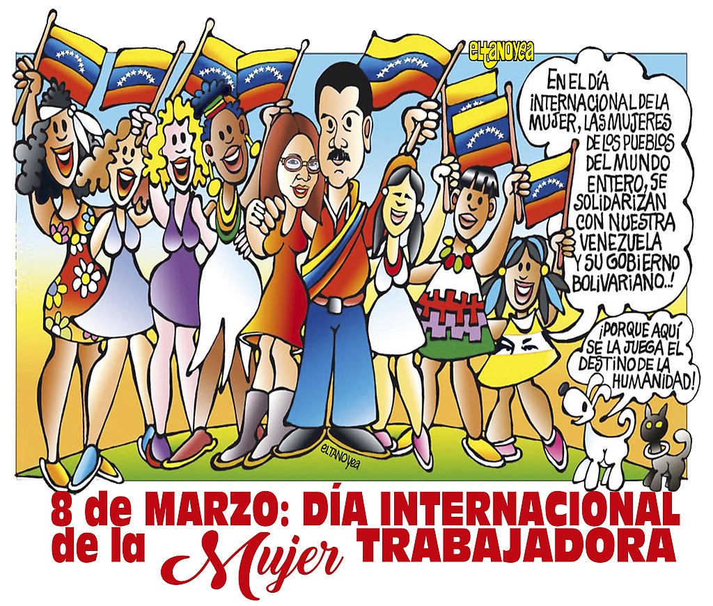 Pero la intención mía es llamar la atención sobre el punto, a ver si nos subimos al autobús de los movimientos sociales progresistas de otros países y defendemos una fecha nacida de nuestras queridas compañeras trabajadoras,en un día que recuerda sus luchas y las nuestras con ellas acompañándonos, como por ejemplo lo que reflena mi modesto dibujo de saludo por esta fecha, las mujeres de todas las razas del mundo solidarizándose con la Revolución Bolivariana de Bolívar, de Chávez y de Nicolás Maduro, sin cuya solidariad sería imposible seguir caminando hacia la victoria, porque de que venceremos,,¡venceremos! y con el aporte de de las compañeras mujeres, con mayor razón.